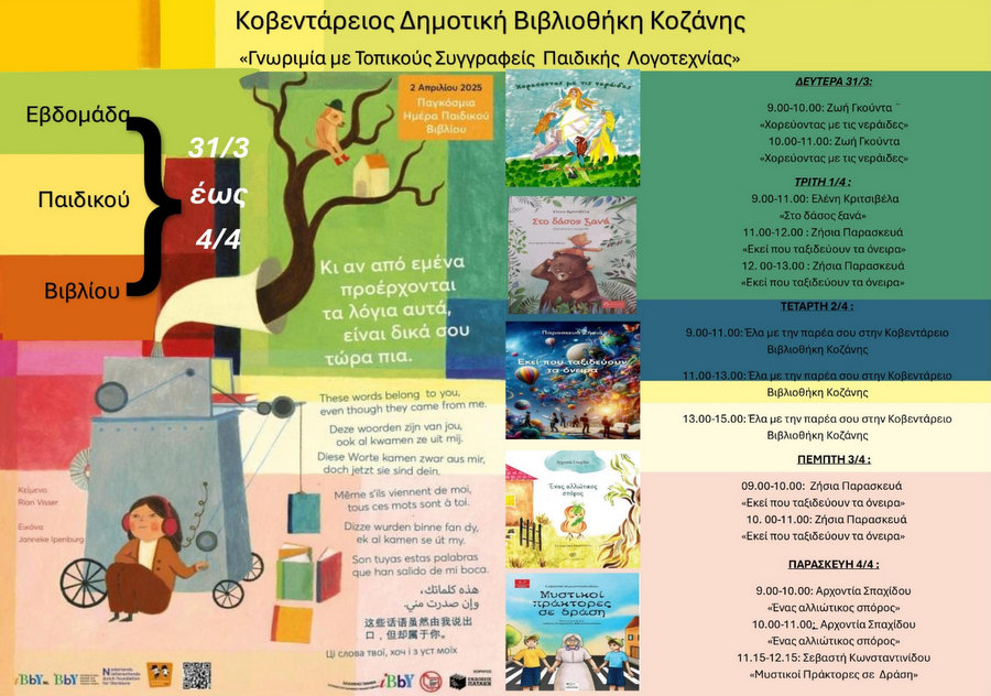 Η δεύτερη ημέρα των δράσεων της Εβδομάδας Παιδικού Βιβλίου στην Κοβεντάρειο Δημοτική Βιβλιοθήκη Κοζάνης, ήταν γεμάτη ενθουσιασμό και ενδιαφέρον! Είχαμε την τιμή να φιλοξενήσουμε δύο υπέροχες