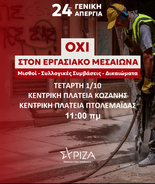 ΣΥΡΙΖΑ Κοζάνης: Συμμετέχουμε στην πανελλαδική απεργία της 1ης Οκτωβρίου
