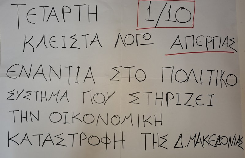Γιάννης Σιδέρης: Τετάρτη 1 Οκτωβρίου κλειστά λόγω απεργίας ενάντια στο πολίτικο σύστημα που στηρίζει την οικονομική καταστροφή της Δυτικής Μακεδονίας
