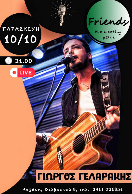 Γιώργος Γελαράκης Live "Friends - the meeting place", την Παρασκευή 10 Οκτωβρίου στην Κοζάνη