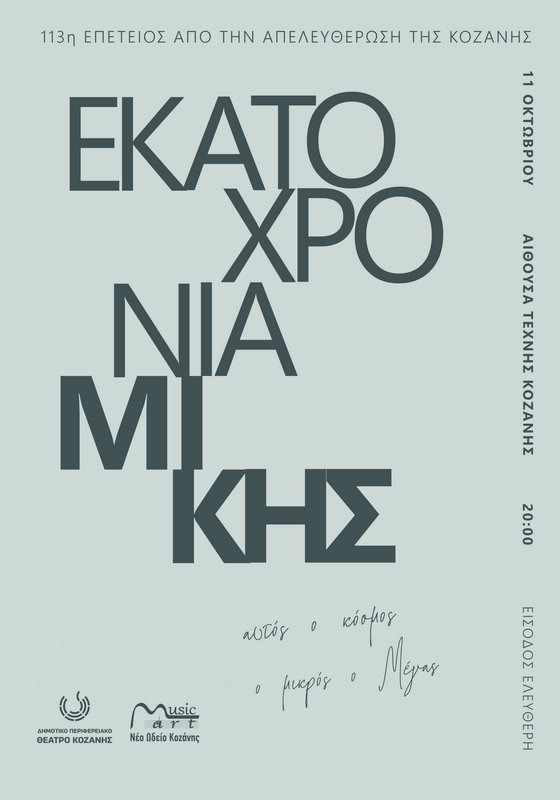 ΔΗΠΕΘΕ Κοζάνης: 113 χρόνια από την απελευθέρωση της Κοζάνης - Η πόλη γιορτάζει και τιμά "100 χρόνια Μίκης"