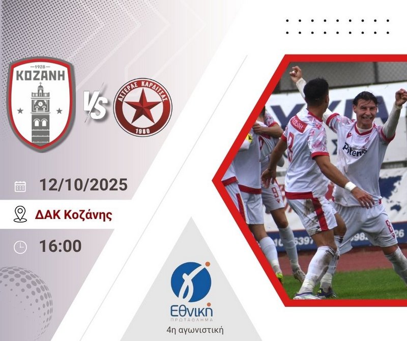 Ο Αστέρας Καρδίτσας αναμένεται να φέρει δυνατή αντίσταση, ωστόσο η Κοζάνη ετοιμάζεται να παρουσιάσει έναν αγώνα γεμάτο ένταση, ταχύτητα και δυνατές φάσεις, με στόχο να χαρίσει στους φιλάθλους της τη νίκη και το πρώτο χαμόγελο της σεζόν.