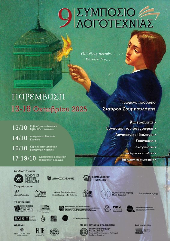 Το 9ο Συμπόσιο Λογοτεχνίας πρόκειται να πραγματοποιηθεί στην Κοζάνη στις 13-19 Οκτωβρίου, με τιμώμενο πρόσωπο τον Συγγραφέα και Πρόεδρο της Εθνικής Βιβλιοθήκης