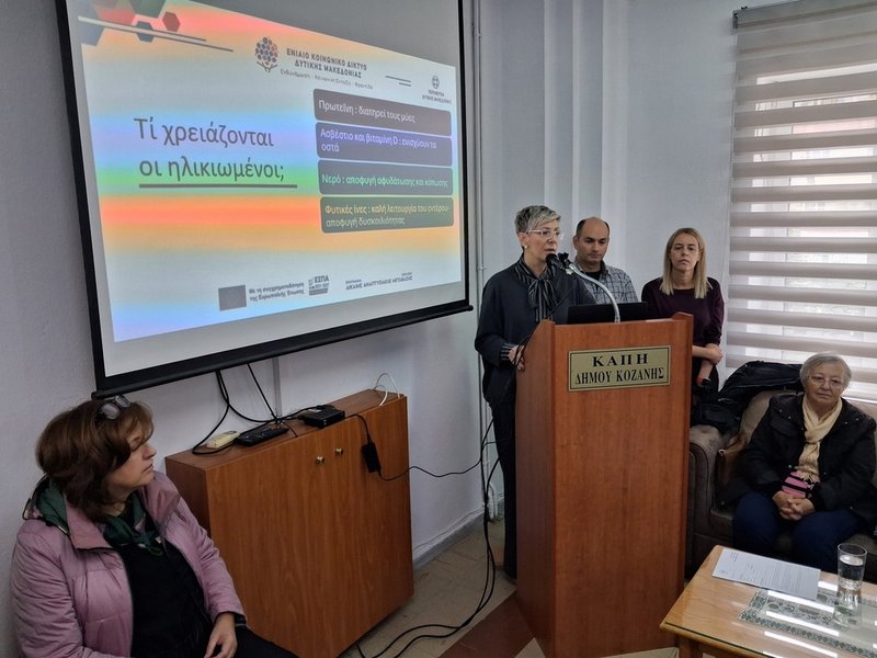, ενημερωτική εκδήλωση για την ενδυνάμωση του μυοσκελετικού, την άσκηση και τη διατροφή, με τη συμμετοχή των γιατρών του Ενιαίου Κοινωνικού Δικτύου Δυτικής Μακεδονίας Ματίνας Κουντουρά και Μαρίας Μόσχου καθώς και του γυμναστή Δημήτρη Βαλταδώρου από το Τμήμα Γυμναστικής των ΚΑΠΗ μας.