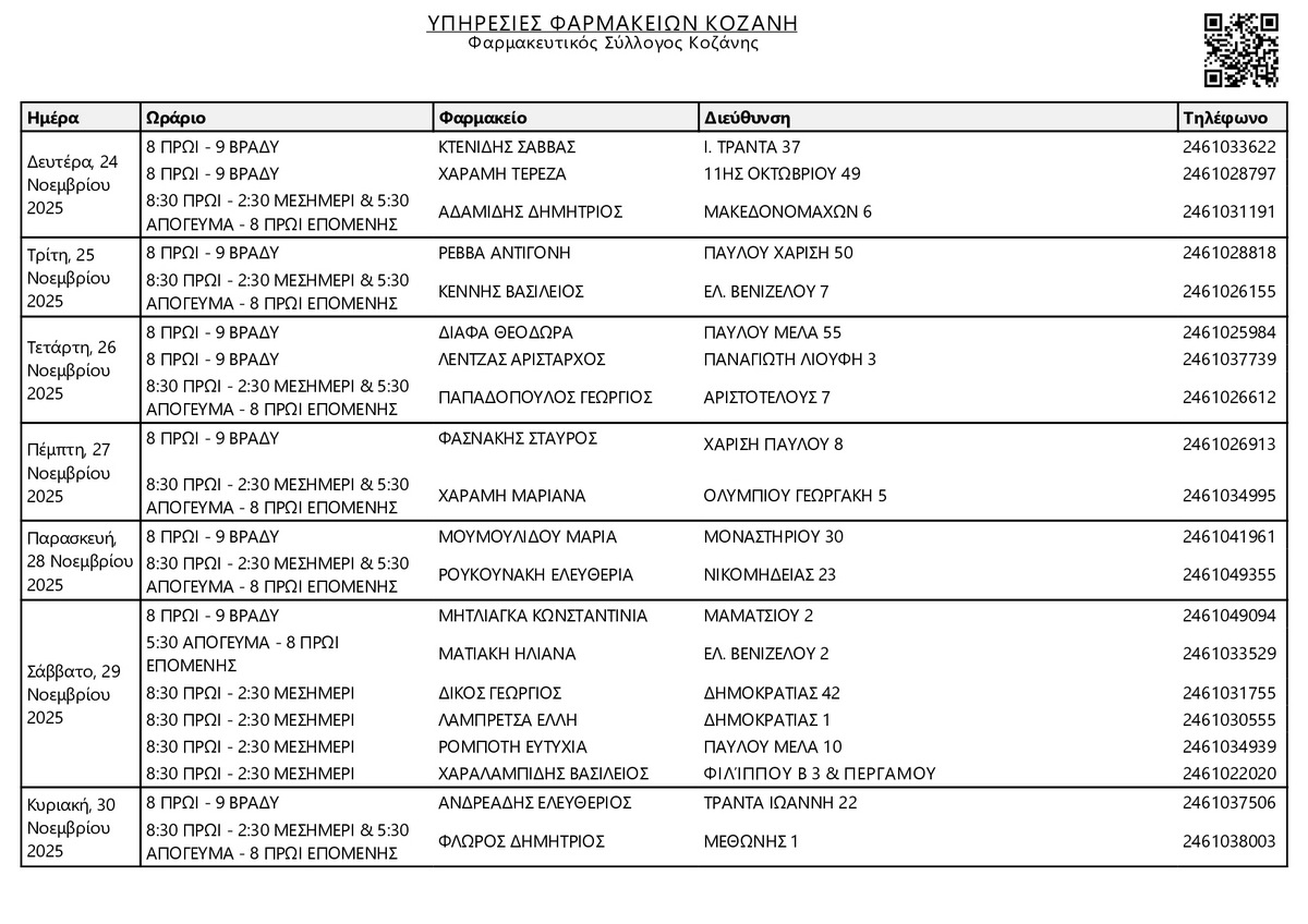 κοζάνη, ειδήσεις, νέα, ΠτολεμαΐδαΟι εφημερίες των Φαρμακείων της Κοζάνης από 24 έως 30 Νοεμβρίου.