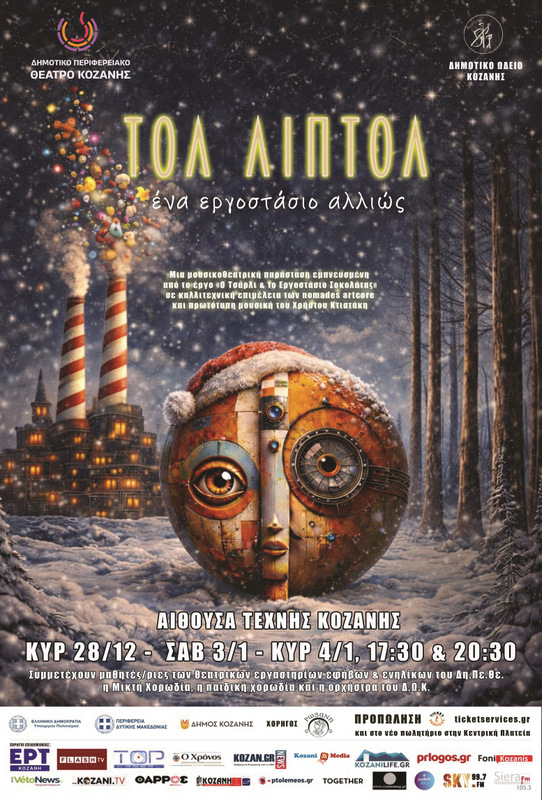 Το Δημοτικό Περιφερειακό Θέατρο Κοζάνης και το Δημοτικό Ωδείο Κοζάνης συμπράττουν με την ομάδα nomades artcore, με τη συμμετοχή 120 ανθρώπων της πόλης, σε μια μουσικοθεατρική παραγωγή, γεμάτη φαντασία και συγκίνηση για μικρούς και μεγάλους.
