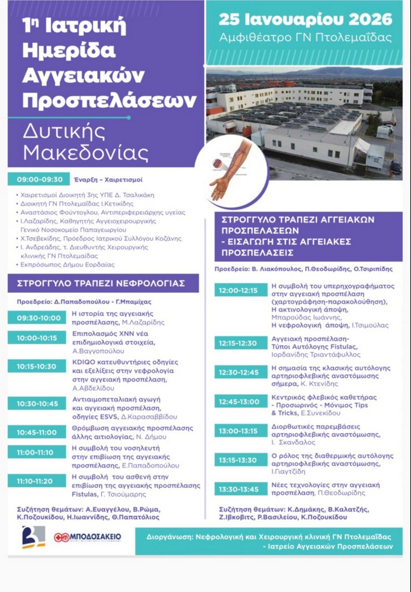 1η Ιατρική Ημερίδα Αγγειακών Προσπελάσεων στο Μποδοσάκειο Νοσοκομείο Πτολεμαΐδας