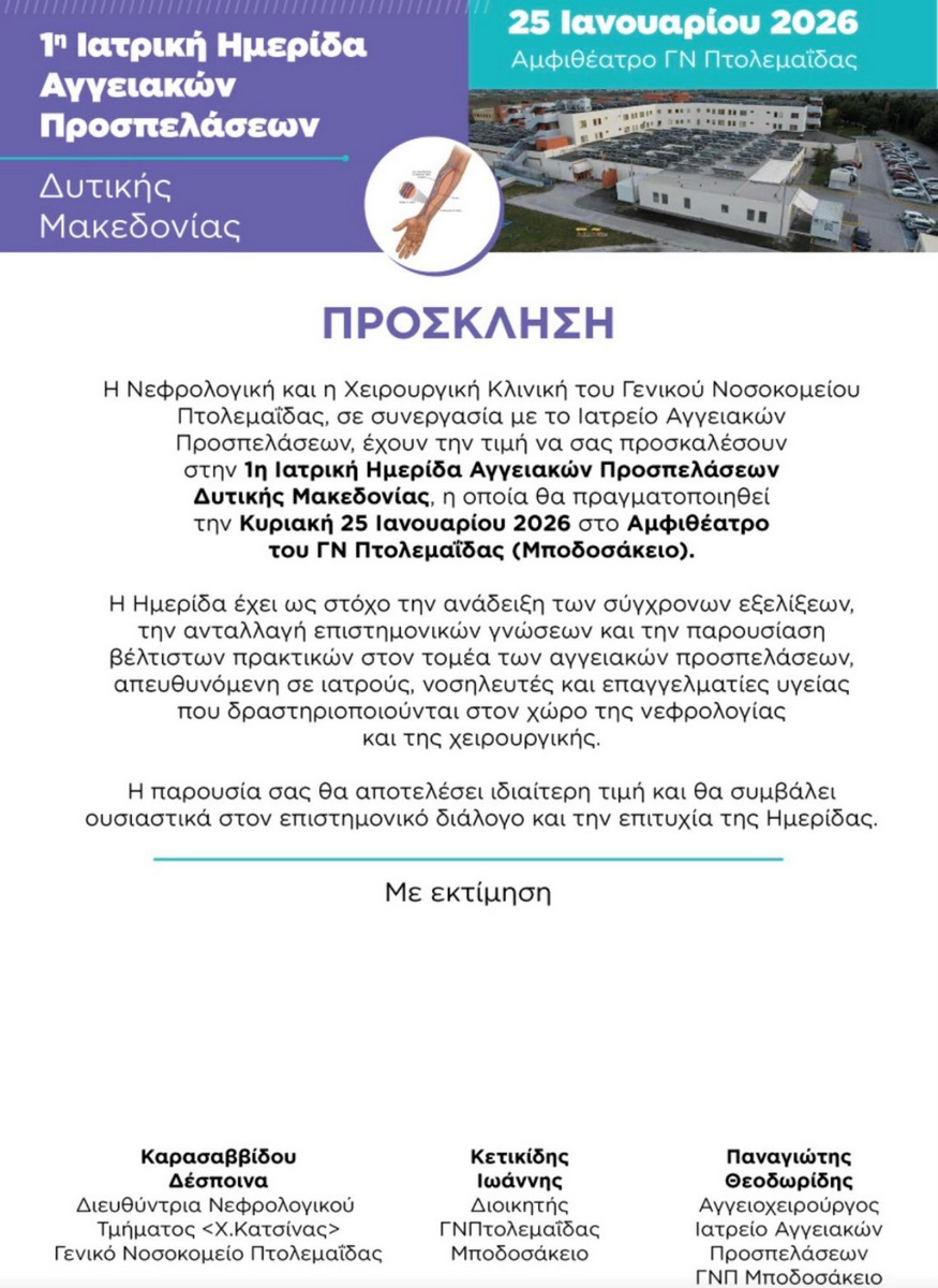 κοζάνη, ειδήσεις, νέα, Πτολεμαΐδα1η Ιατρική Ημερίδα Αγγειακών Προσπελάσεων