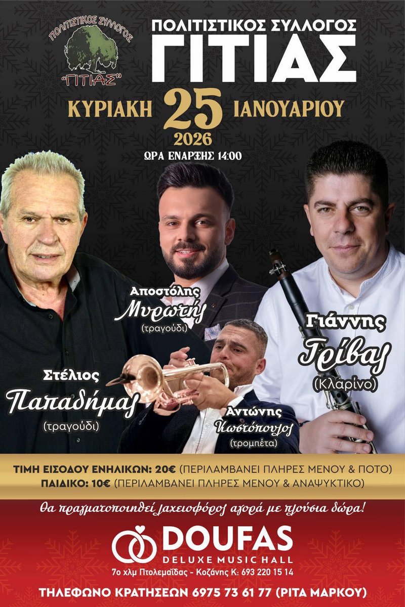 κοζάνη, ειδήσεις, νέα, ΠτολεμαΐδαΤην Κυριακή 25 Ιανουαρίου 2026 σας περιμένουμε όλους σε ένα μεγάλο παραδοσιακό γλέντι, γεμάτο χορό, τραγούδι και κέφι!