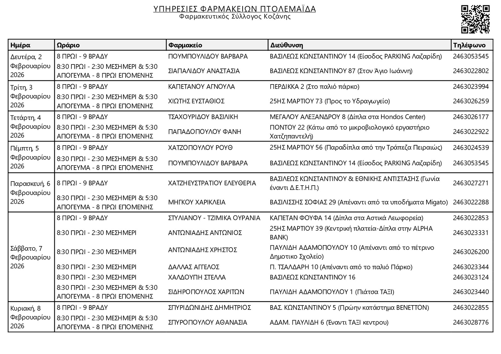 κοζάνη, ειδήσεις, νέα, ΠτολεμαΐδαΚοζάνη: Οι εφημερίες των φαρμακείων από 2 έως 8 Φεβρουαρίου.
