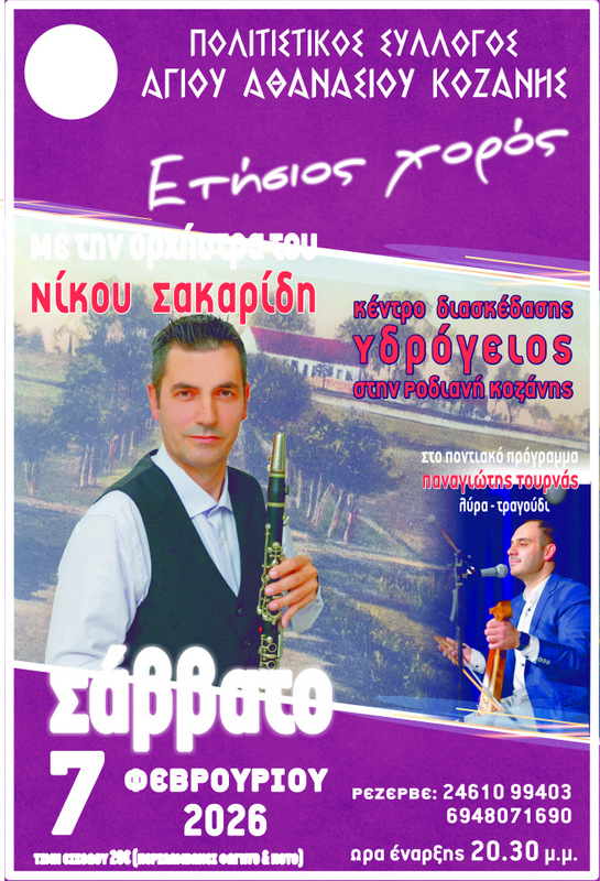 κοζάνη, ειδήσεις, νέα, ΠτολεμαΐδαΟ Σύλλογός μας διοργανώνει τον ετήσιο καθιερωμένο χορό του στο οικογενειακό κέντρο « ΥΔΡΟΓΕΙΟΣ » στην Ροδιανή Κοζάνης. Καλούμε όλα τα μέλη, τους γείτονες