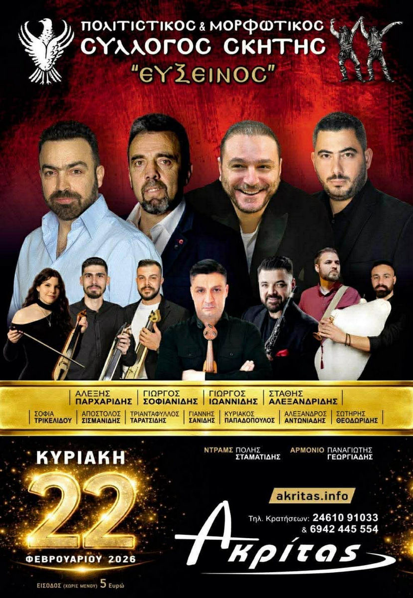 Την Κυριακή 22 Φεβρουαρίου ο Ετήσιος Χορός του Πολιτιστικού Μορφωτικού Συλλόγου Σκήτης "Εύξεινος"