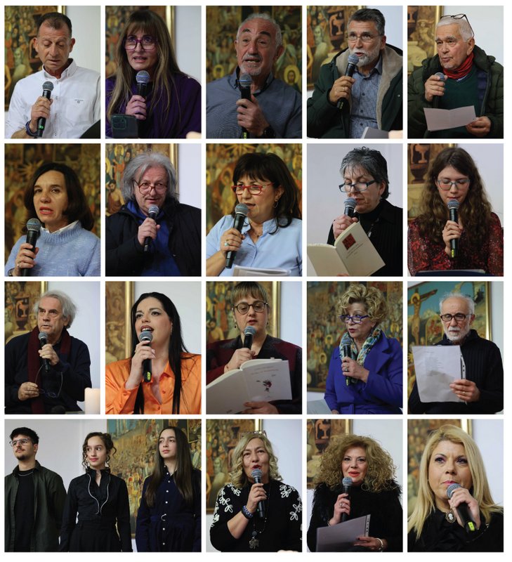 Ποιήματα διάβασαν, κατά σειρά, οι: Χρύσα Ιωαννίδου, Αιμιλία Κεφαλά, Δήμητρα Σωτηρoπούλου (ηθοποιοί του ΔΗΠΕΘΕ), Βαγγέλης Νικόπουλος, Τάσα Τοπάλη, Φωτεινή Καμίτα, Εριφύλη Κοτσίδη, Γιώργος Κωνσταντινίδης, Δήμητρα Παπανικολάου,  Αλεξάνδρα Διάφα, Σέβη Κωνσταντινίδου, Σίμπα Ναρντούτσι-Βαϊνά, Δώρα Τοπάλη, Μερόπη Βαχτσεβάνου, Μαρία Μπέλλη, Χάρης Μανουσαρίδης, Γεωργία Μανουσαρίδου, Γιώργος Δελιόπουλος, μαθητές του περιοδικού «Όνειρα ψυχών» (τους οποίους παρουσίασε η εκπαιδευτικός Μαρία Παπαδοπούλου), Δώρα Μήλιου, Σοφία Σοφίδου, Βάγια Λαμπροπούλου, Έφη Κατσόγιαννου-Τριανταφύλλου, Όλγα Κοτζαμανίδου, Ολυμπία Τσικαρδάνη, Αναστάσιος Σεμίζογλου, Σοφία Αποστολίδου, Βέρα Δόγια, Βιβή Πατσιλιά, Σάββας Χριστοδούλου, Σοφία Τζήκα, Αλέξανδρος Ζαφειρόπουλος, Γιάννης Τσολάκης, Νίκος Πλεξίδας και Β.Π. Καραγιάννης.