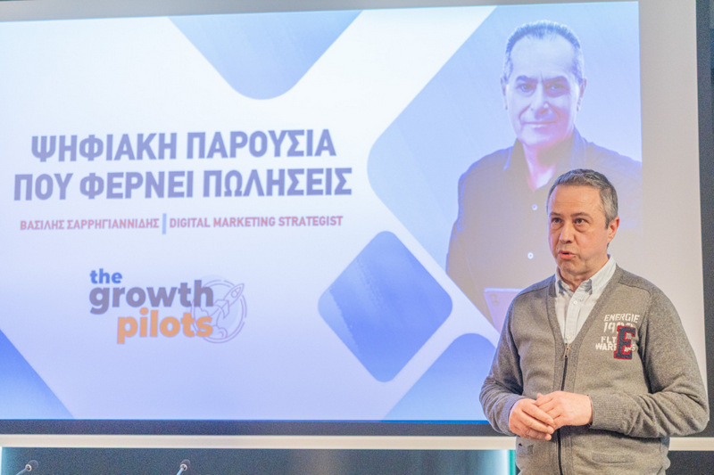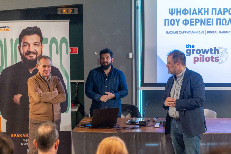 Κεντρικοί εισηγητές της ημερίδας ήταν οι ιδρυτές της ομάδας Growth Pilots, Βασίλης Σαρρηγιαννίδης (Digital Marketing Strategist) και Ηρακλής Ασλανίδης (Digital Marketing & Growth Consultant), οι οποίοι ανέλυσαν με πρακτικά παραδείγματα πώς η Τεχνητή Νοημοσύνη (AI) και η σωστή διαχείριση των κοινωνικών δικτύων μπορούν να μεταμορφώσουν μια επιχείρηση.