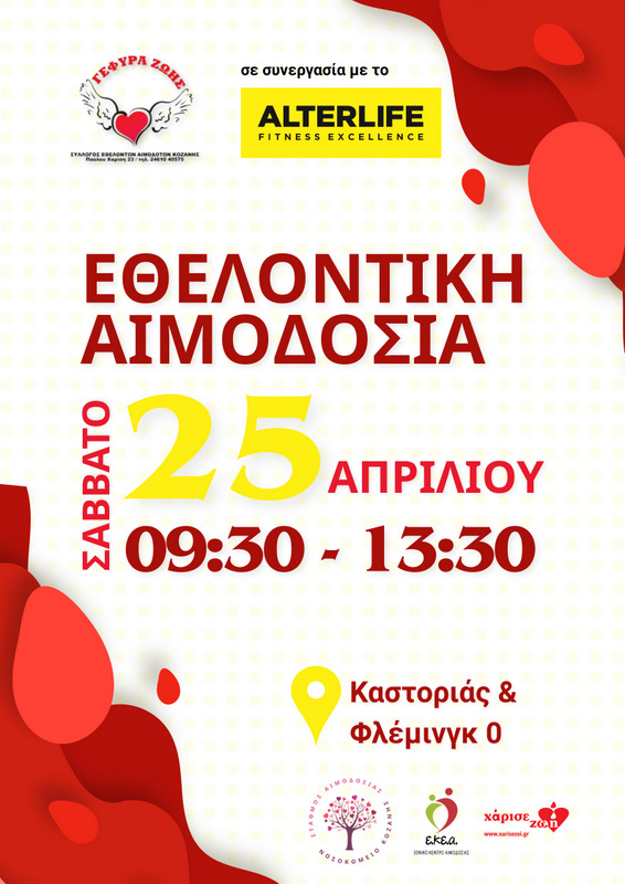 , σας περιμένουμε στον χώρο του γυμναστηρίου ALTERLIFE (ΚΑΣΤΟΡΙΑΣ & Φλέμινγκ 0, Κοζάνη), για να συμμετάσχετε σε αυτή την πράξη προσφοράς ζωής.