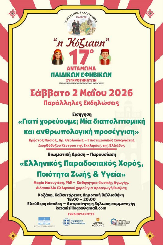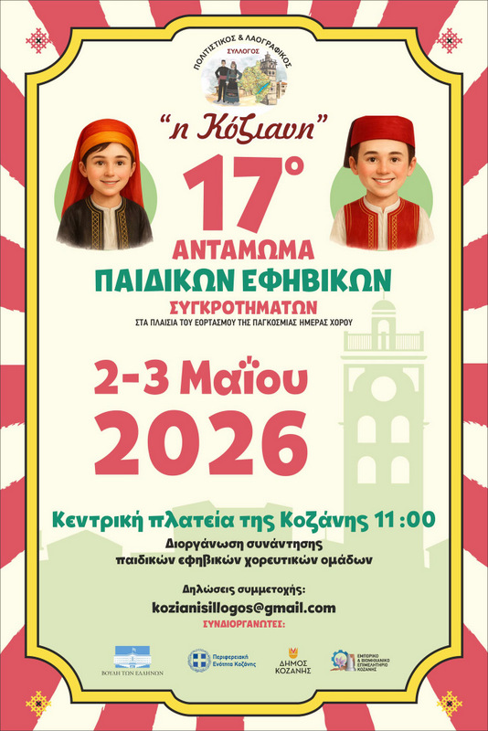 Φέτος, ο εορτασμός της Παγκόσμιας Ημέρας Χορού για το Σύλλογο «Κόζιανη», κορυφώνεται στην Κοζάνη με το 17ο Αντάμωμα, που θα πραγματοποιηθεί την  Κυριακή 3 Μαΐου 2026, στην Κεντρική Πλατεία Κοζάνης και ώρα 11.00, με τη συμμετοχή 81 πολιτιστικών συλλόγων και αρκετών εκατοντάδων παιδιών και εφήβων χορευτών από όλη την Ελλάδα.