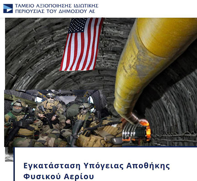 5. Όμως αυτή η δεξαμενή δεν είναι αρκετή για τα σχέδια των Αμερικάνικων αφού ήδη «είκοσι εταιρείες εκδήλωσαν ενδιαφέρον για αγορά 12,2 δισ. κυβικά μέτρα/έτος ενώ η δυναμικότητα επαναεριοποίησης της Πλωτής Μονάδας Αποθήκευσης Υγροποιημένου Φυσικού Αερίου (FSRU) είναι 5,5 δισ. κ.μ./έτος». Έτσι κατά παραγγελία τους, το Ελληνικό κράτος με έξοδα της τάξης των 400 εκατομμυρίων Ευρώ, διαμόρφωσε την τεράστια υποθαλάσσια δεξαμενή αποθήκευσης LNG στη Νότια Καβάλα.[27] Οι εργασίες στη δεξαμενή, (Υπόγεια Αποθήκη Φυσικού Αερίου (ΥΑΦΑ) της Νότιας Καβάλας) που πρώην «φιλοξενούσε» κοιτάσματα φυσικού αερίου και έχουν σχεδόν εξαντληθεί, πραγματοποιήθηκαν ήδη και είναι προς πώληση μέσω ΤΑΙΠΕΔ. Στην ΥΑΦΑ της Καβάλας μπορεί να αποθηκευτεί φυσικό αέριο σε αέρια μορφή και να εξασφαλίσει αποθέματα για μήνες. Η χωρητικότητα της υποθαλάσσιας αποθήκης εκτιμάται περίπου στο 1 bcm. Ο ετήσιος ενεργός διακινούμενος όγκος εκτιμάται σε 360 εκατ. Nm3 ή σε 720 εκατ. Nm3, για έναν ή δύο κύκλους ανά έτος, αντίστοιχα. Η μέγιστη ημερήσια δυναμικότητα εισπίεσης της υπόγειας αποθήκης με φυσικό αέριο εκτιμάται σε 5 εκατ. Nm3/d. [28]