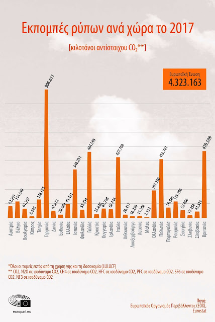 Οι εκπομπές διοξειδίου του άνθρακα των χωρών της ΕΕ |